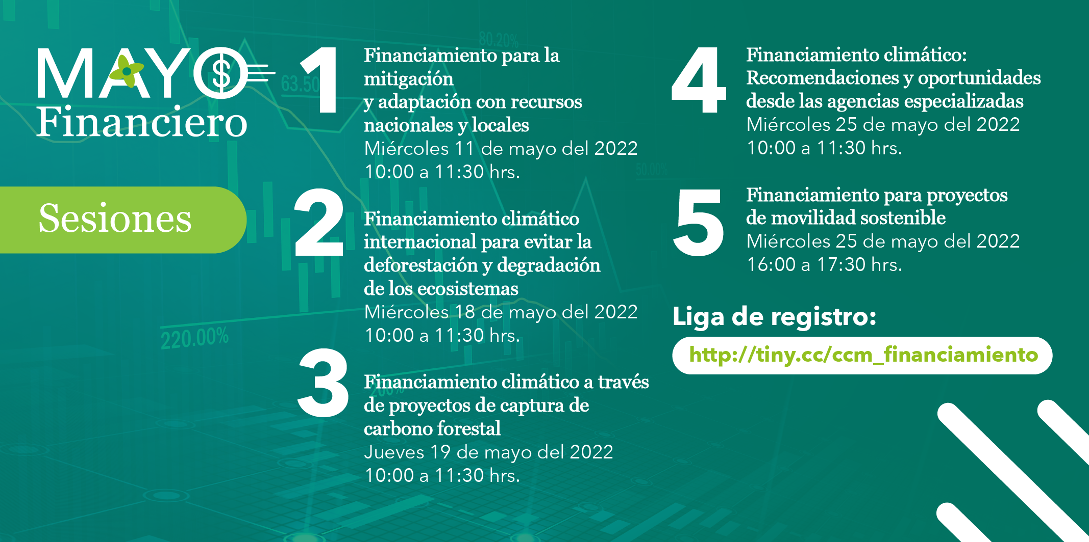 Durante el mes de mayo la Comunidad Climática Mexicana llevará a cabo su serie de seminarios sobre financiamiento climático, cuyo objetivo es compartir con los gobiernos subnacionales experiencias en la recaudación de recursos y cómo han logrado operar con éxito diversos mecanismos como impuestos, pago de derechos, anexo de sustentabilidad, etc.