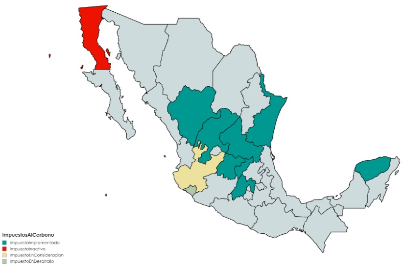 A partir del 2017, ocho estados mexicanos han comenzado a implementar impuestos al carbono, reflejando esta tendencia global hacia las economías de mercado de carbono. Las entidades son: Durango, Estado de México, Guanajuato, San Luis Potosí, Tamaulipas, Queretaro, Yucatán y Zacatecas.